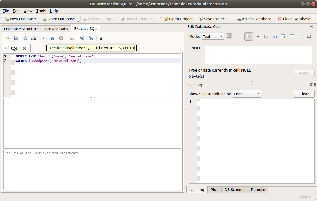 After that, if you open the database with DB Browser for SQLite, you will see the data you just created in the Browse Data tab: